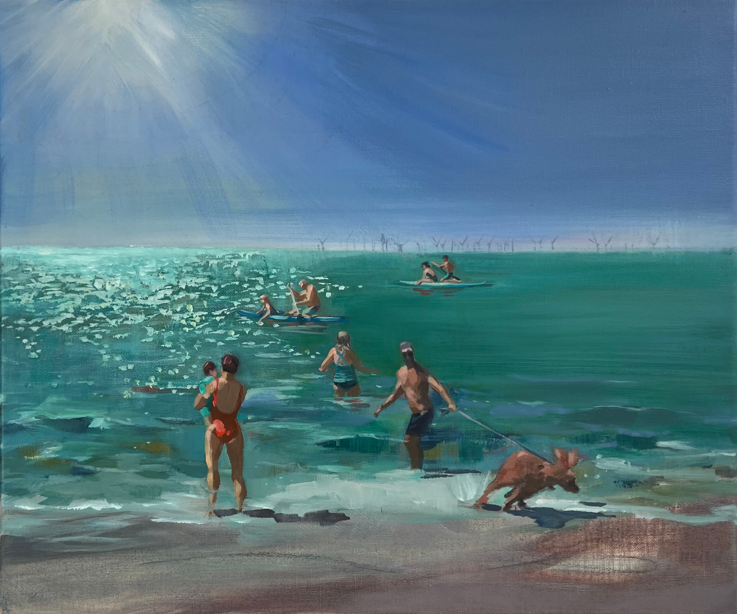 Find out moreI swim, paint and live on the coast in Brighton UK. A year-round sea swimmer, member of Brighton Swimming Club and Sealanes on the front, I live in a perfect place to witness and record the open sky and sea, the unique experience of swimming with others. Painting in oils, on linen or canvas, I try to express how it feels to experience our connection with the sea, the sky and each other.