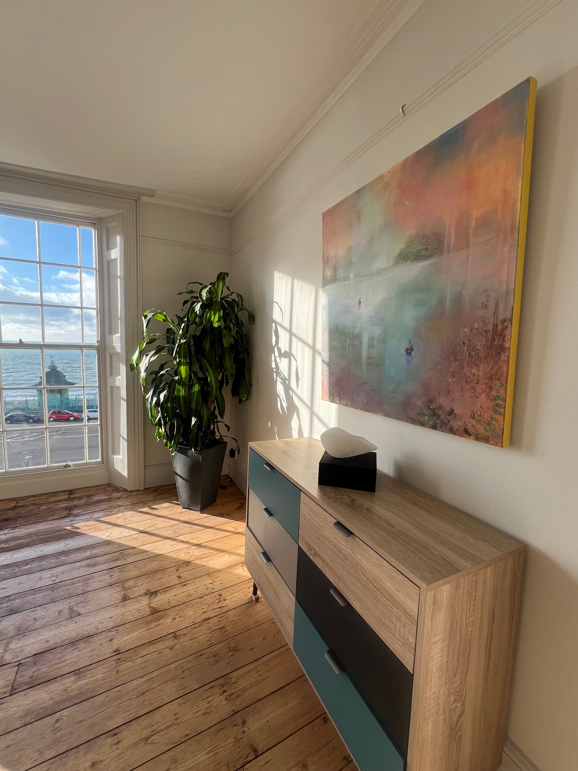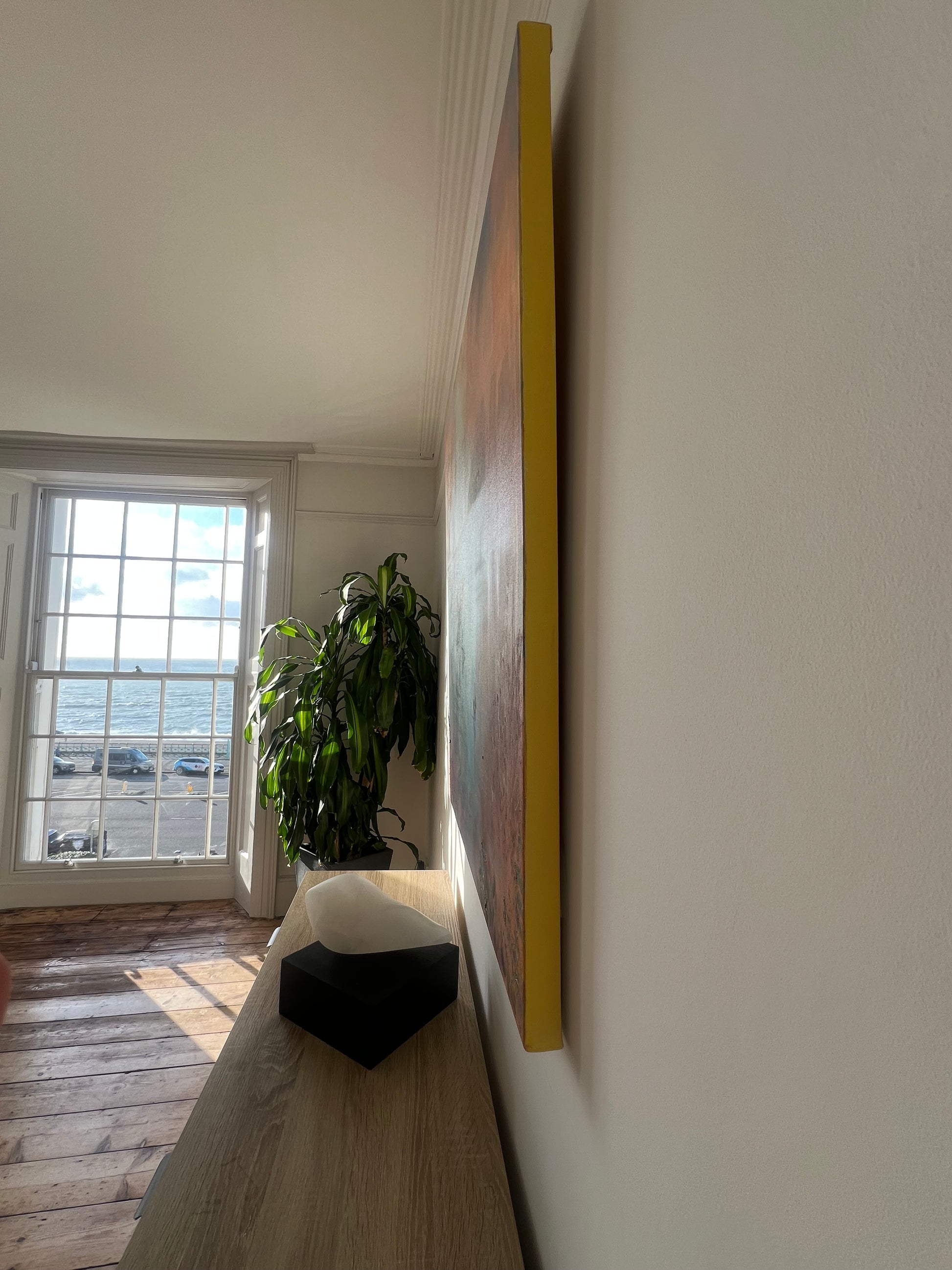 This painting is unframed, the deep canvas is ready to hang